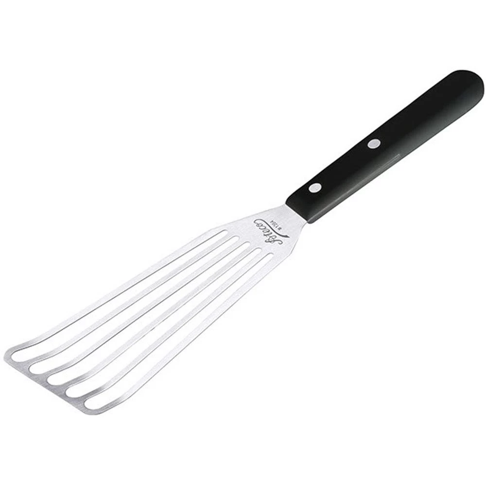 Polyoxymethylene Thermoplastic (POM) handled spatulas combine the feel of wood with the easy care of plastic. Dishwasher safe. Rivets and blade are made with 420 grade stainless steel.