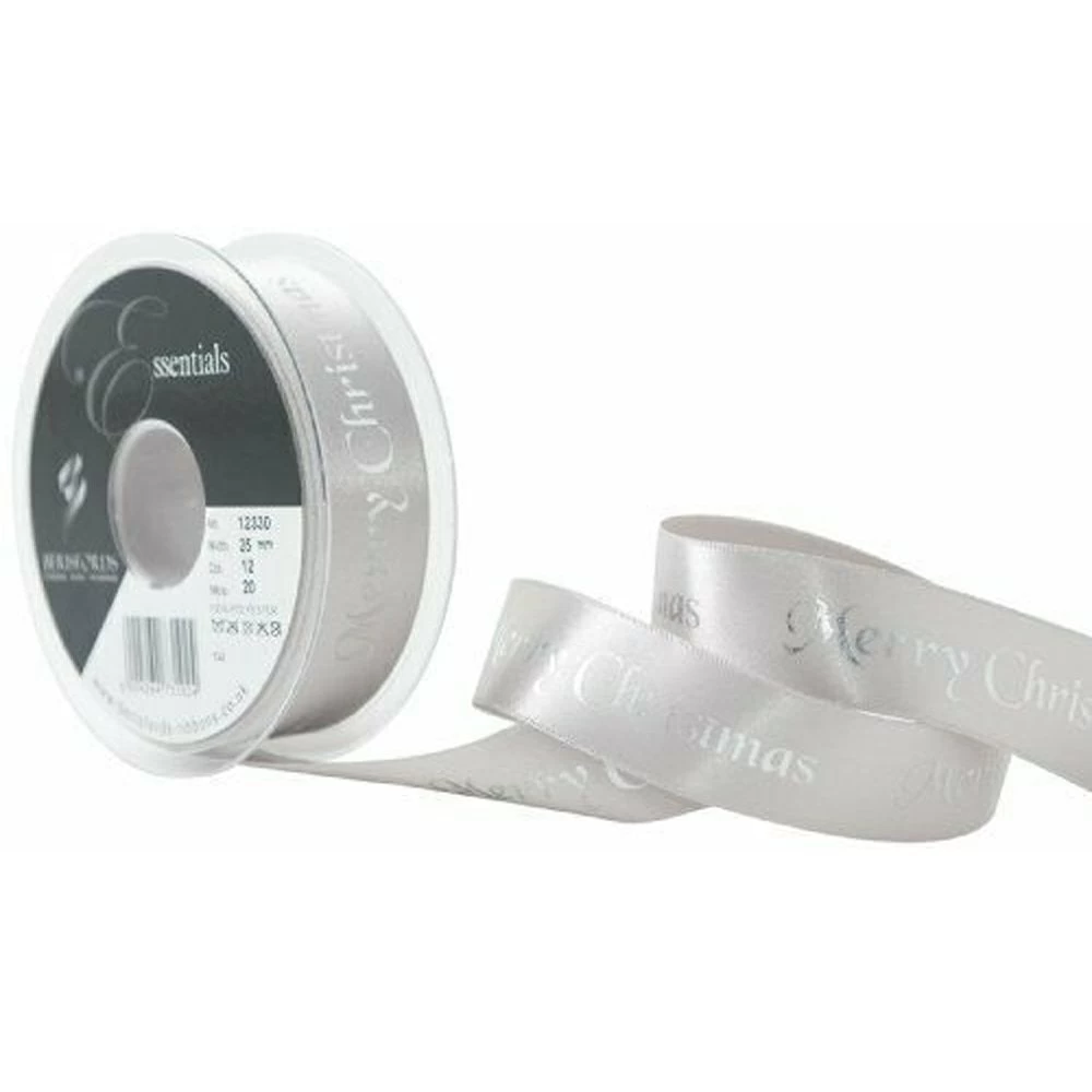 Berisford Ribbon Merry Christmas Silver Double Faced Satin Ribbon 20 Meters – 25mm X 20M