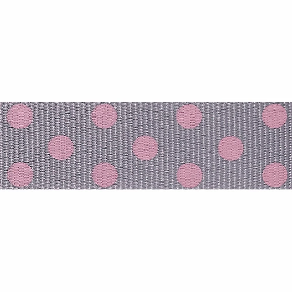 Berisford Ribbon Spotty Grosgrain Grey/Pink Colour No.13 Ribbon – 15mm X 20M
