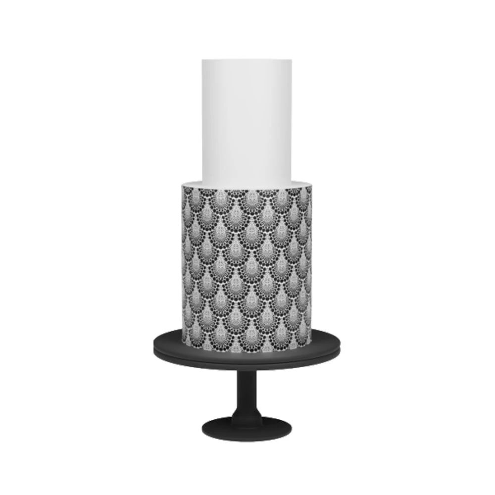 Add some texture and depth to your creation with this cake stencil. Perfect for double barrel cakes and taller tiers, the stencil pattern area is almost 9 inches high, saving you time and creating a seamless effect from top to bottom. This pattern looks amazing when used with a white on white effect, but also stunning when used with contrasting colours.