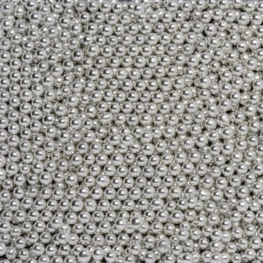 Metallic Sugar Balls – Ingredients: Sugar (98%), corn starch, maltodextrin, FISH gelatine, colourings: Silver E174; if Gold E174, E171, E172, E555, E100, E102; if Blue Silver E174, E133; if Pink Silver E174, E122; if Green Silver E174, E100, E133. Glazing agent (E904).