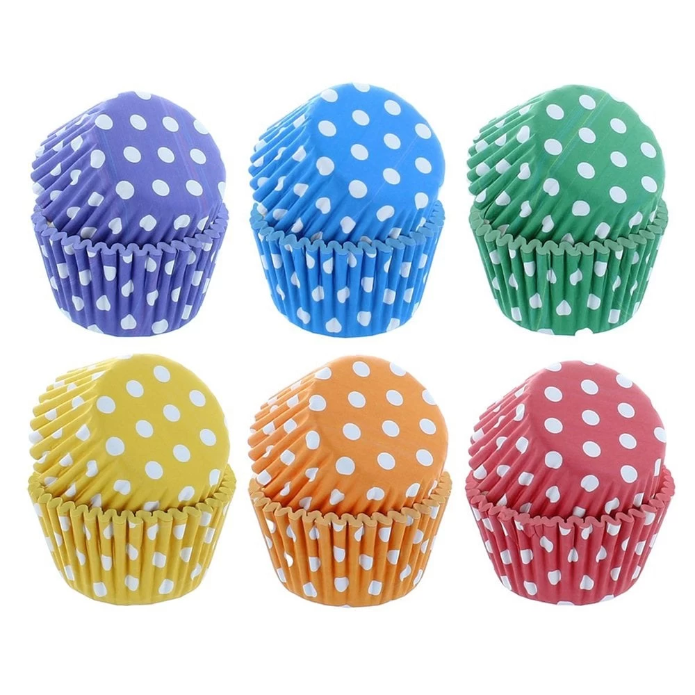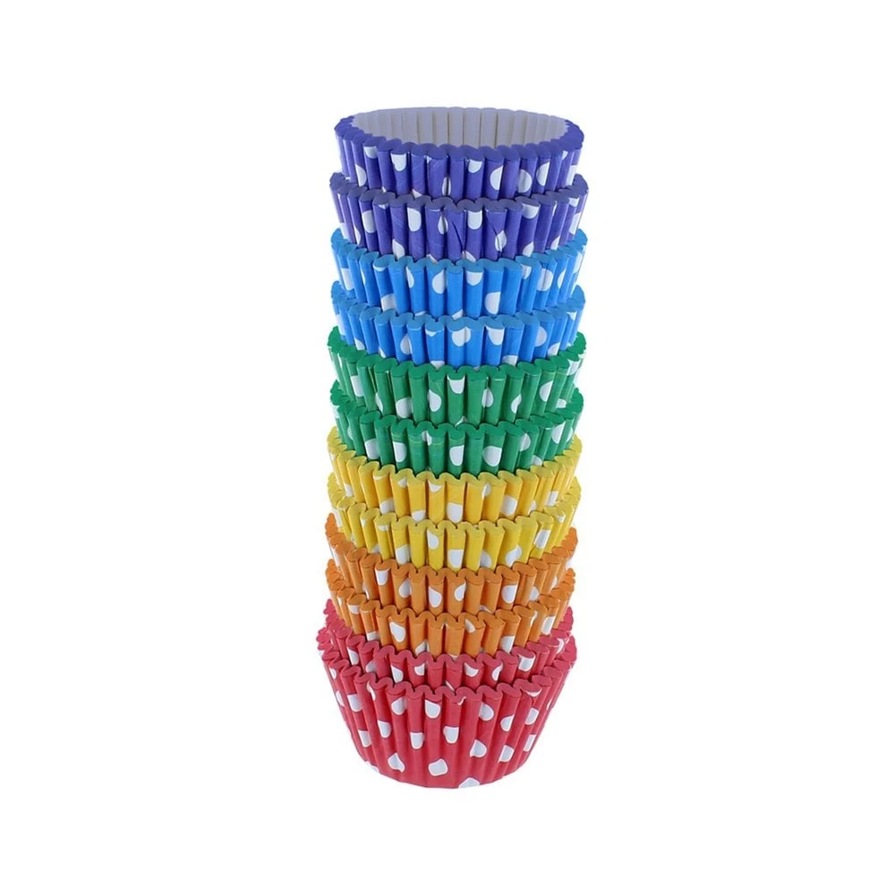 These bright Polka Dot baking cases by Baked with Love are perfect for presenting bright and bold cupcakes. Made from high-quality odourless greaseproof paper, this pack of 300 cupcake cases features a mixture of eye-catching colours including purple, blue, green, yellow, orange, and red all with bold white spots.