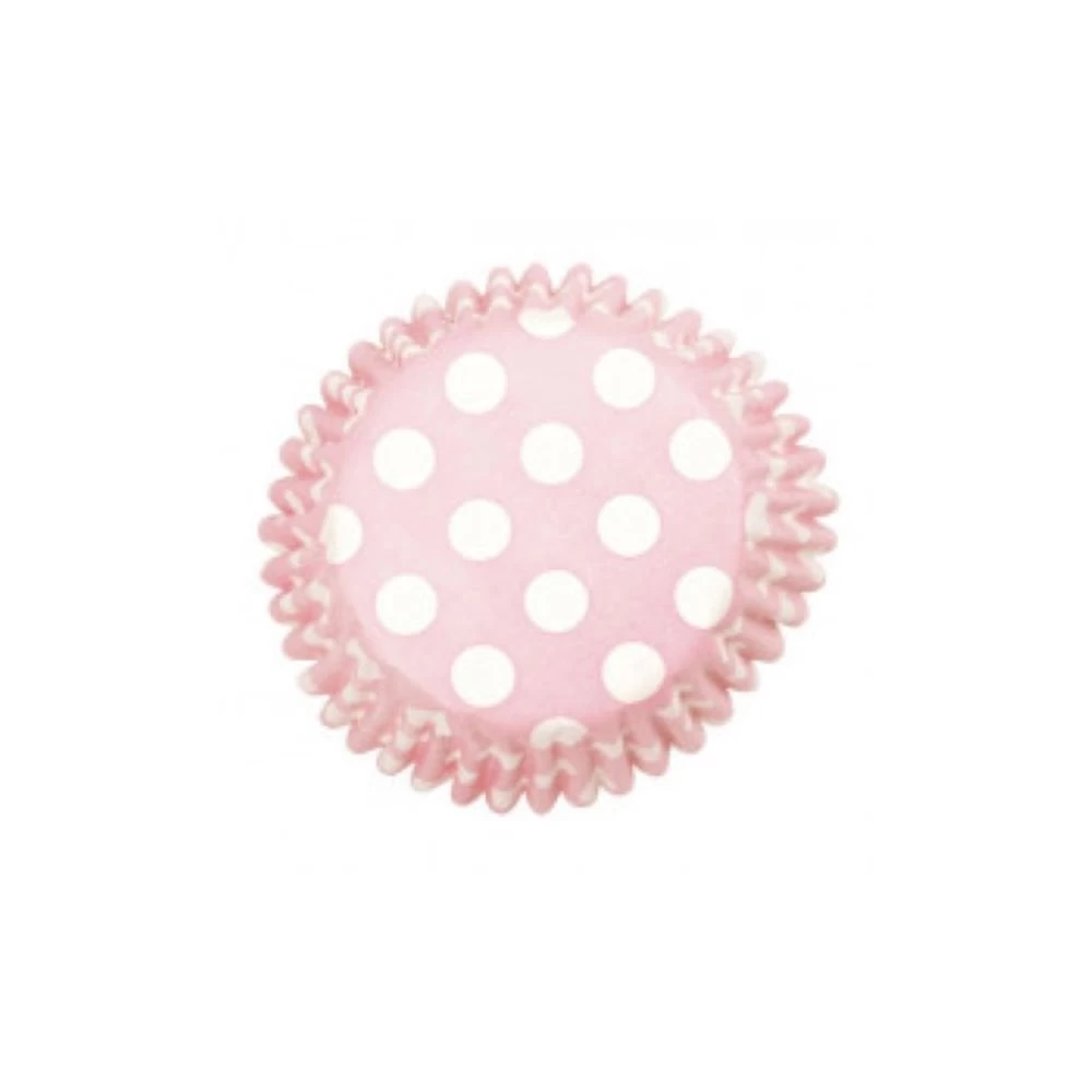 Bulk pack (Boxed 1008). These Pink Spot Printed Baking Cases are made from a heavy duty paper with a greaseproof finish which helps them to maintain as much colour as possible through the baking process. The base of these Baking Cases is 50mm across making them ideal for cupcakes and muffins. There are 1008 cases in each pack.