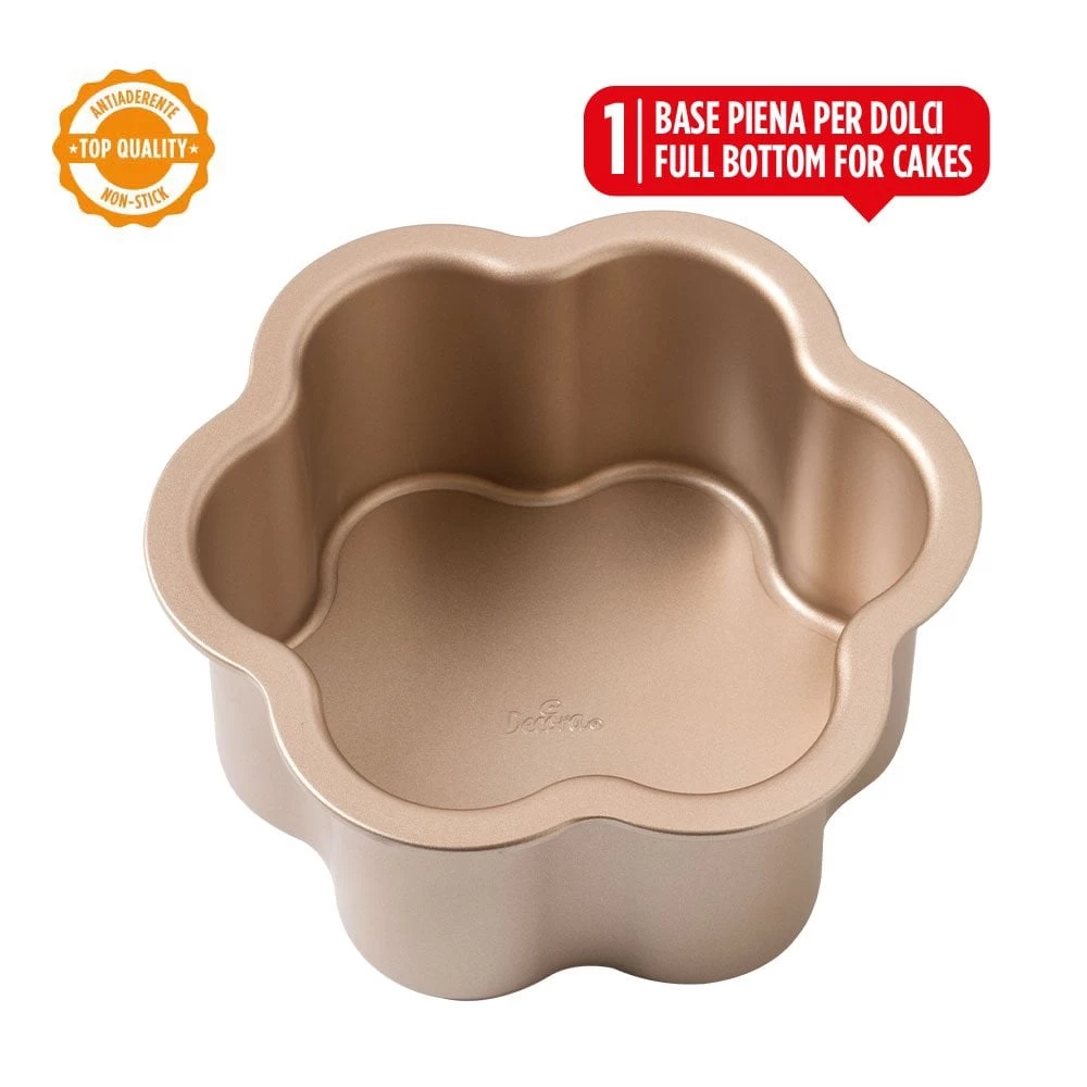 High quality non-stick metal mold, a material that guarantees maximum wear resistance and absolute anti-adhesion. Ideal for sweet and savory preparations with perfect shapes. One mold, 2 uses; with double base, one with a tube to make flower-shaped angel food and the other with a flat base to make flower-shaped sweets.