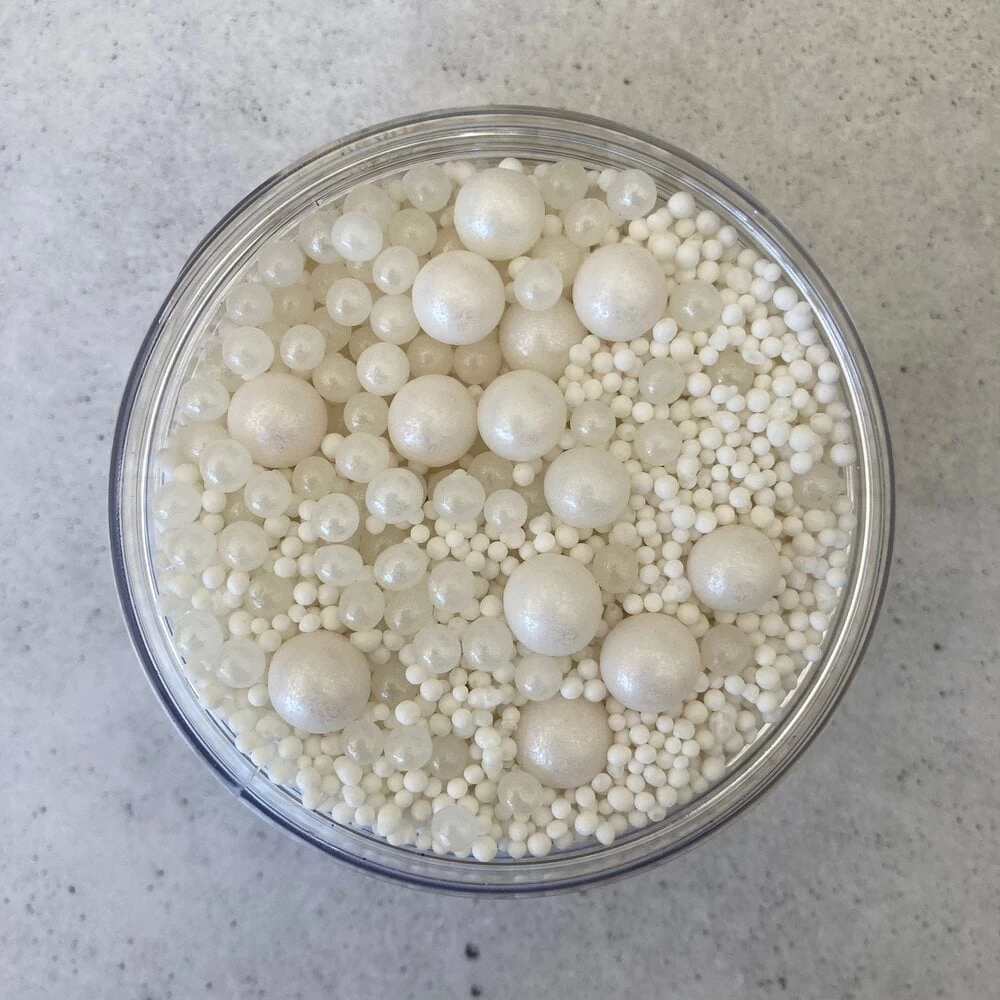 This is a luxe blend of white non pareils and pearls in various sizes.
