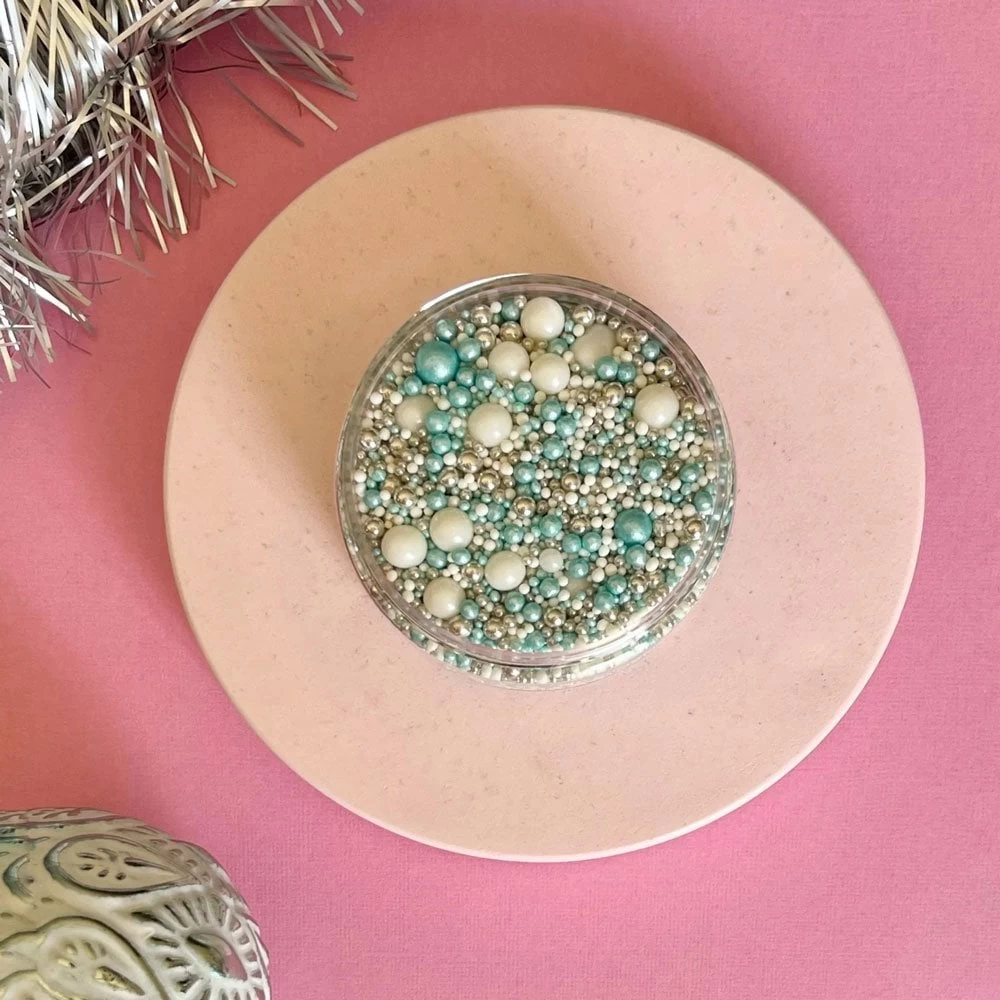 Winter Wonderland is a joyful blend of white, silver and shimmering blue pearls.