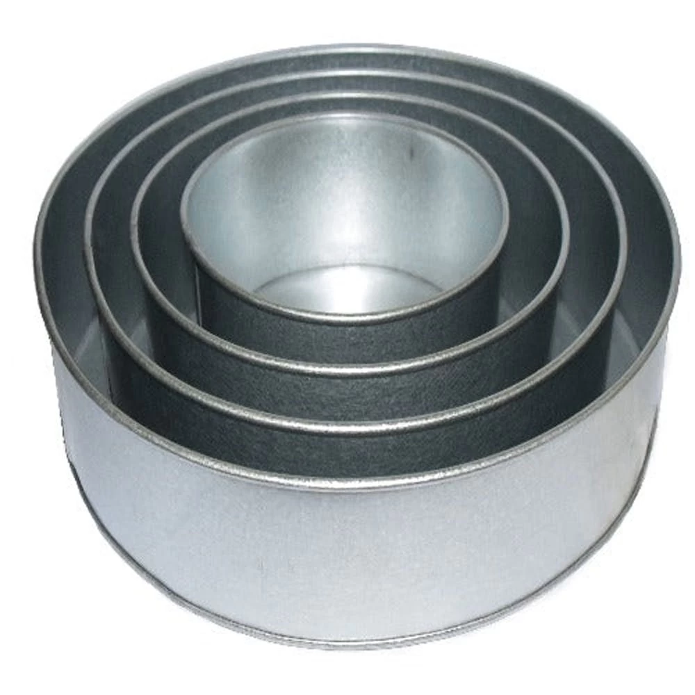 The product contains 4 round cake baking tins of 6″ 8″ 10″ 12″ (3″ deep)