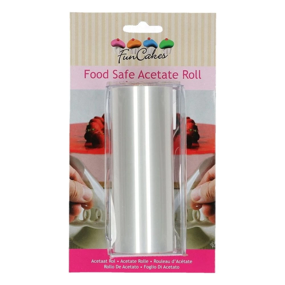 - Use the FunCakes acetate roll for working with chocolate and making e.g. bavarois and cheesecakes. The acetate foil is food safe and is easy to cut for various purposes.