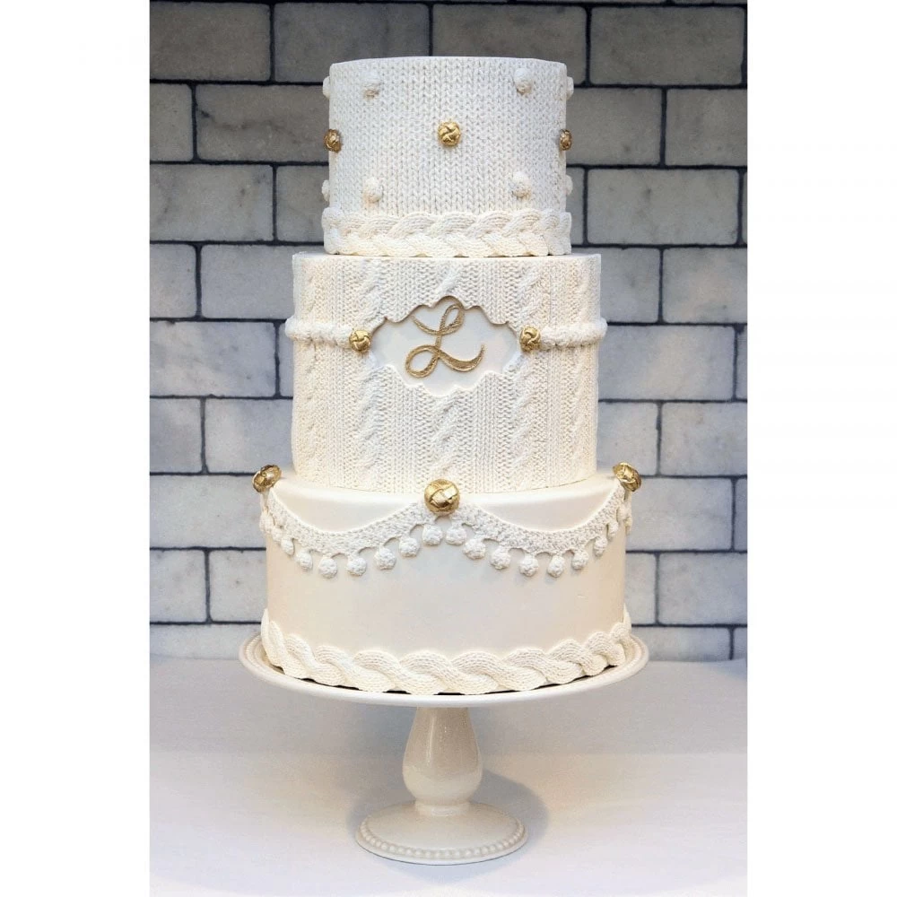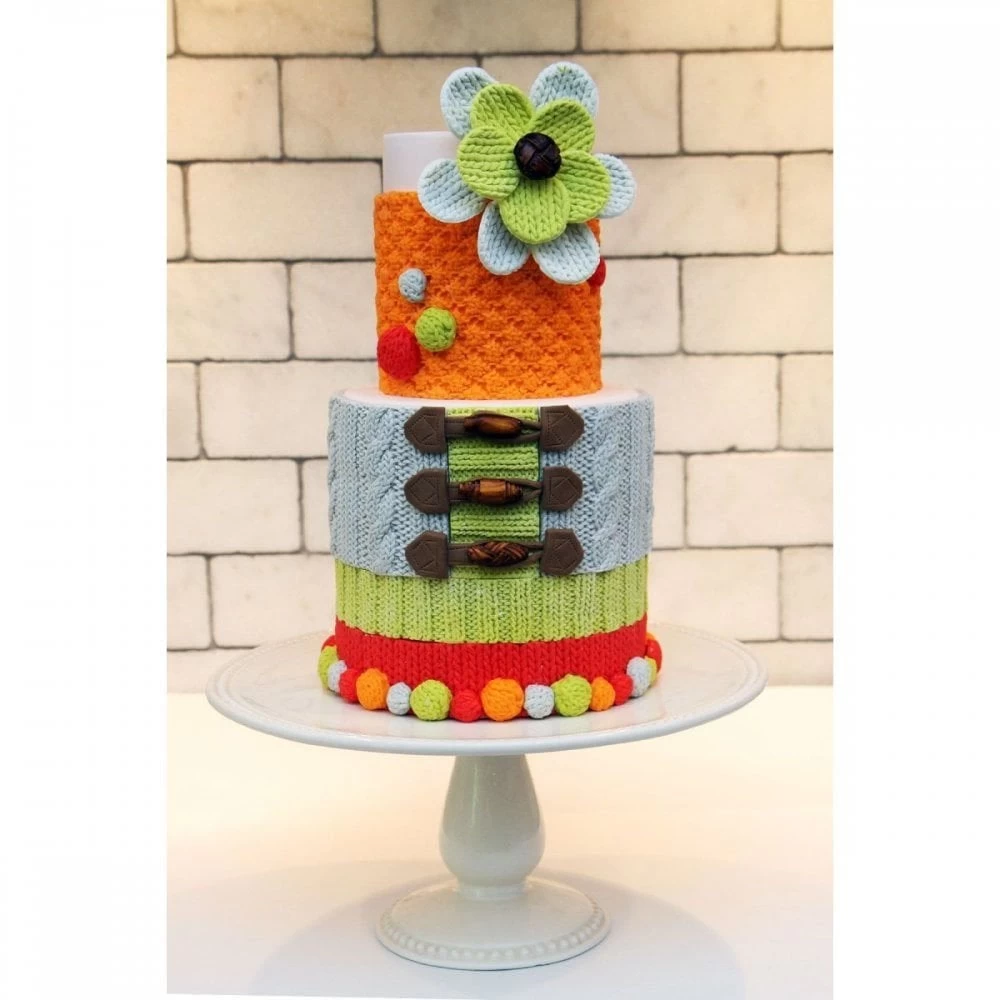 The Simpress mould combines ribs and cables on a classic knitted background that is not only great for covering cake tiers, but also for adding textures to clothing for cake figures and novelty cakes.