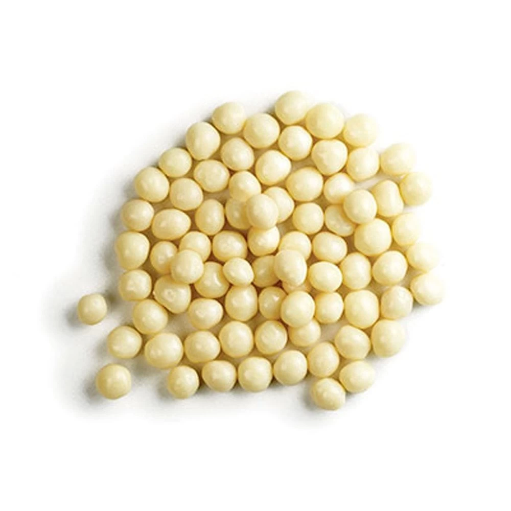 Callebaut White Chocolate Crispearls Tiny, shiny pearls in white chocolate with a crunchy, toasted biscuit kernel