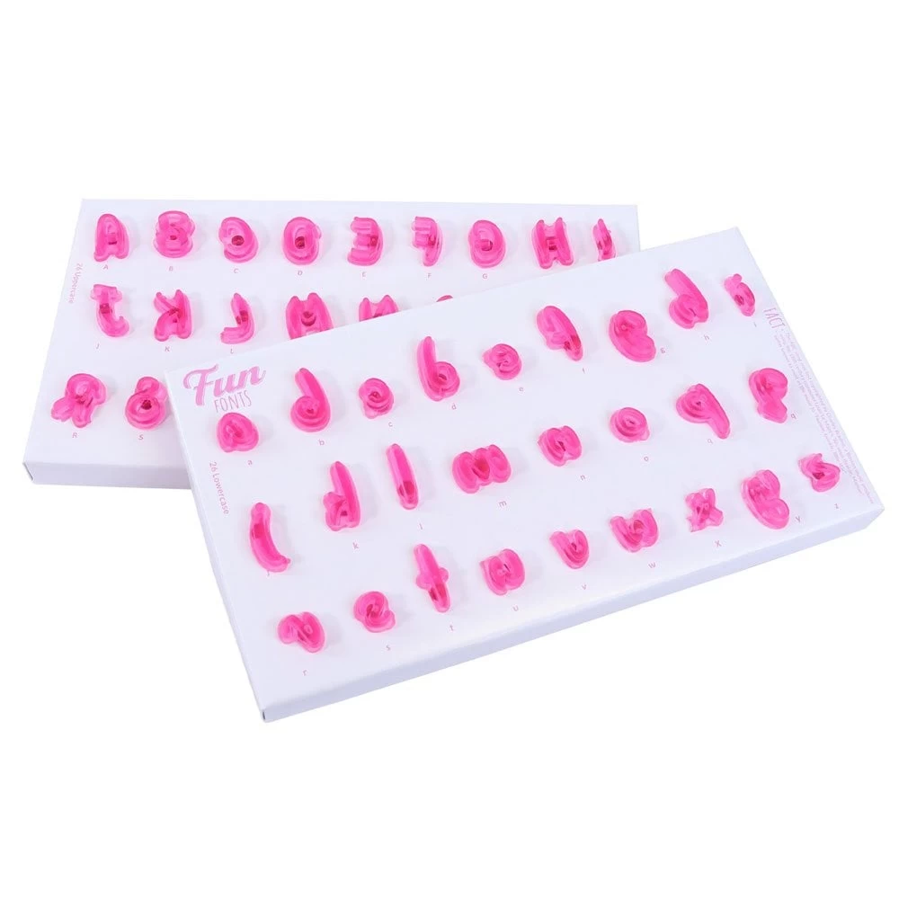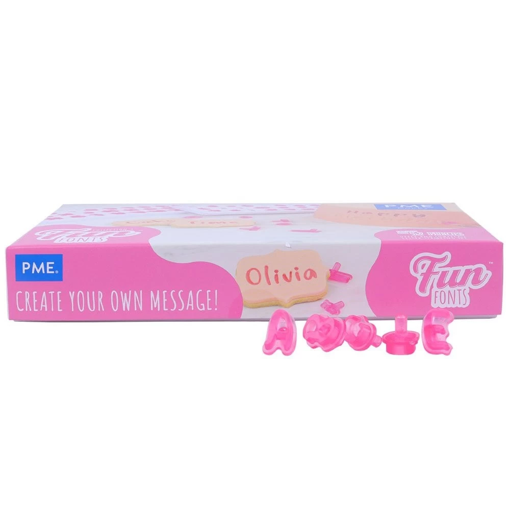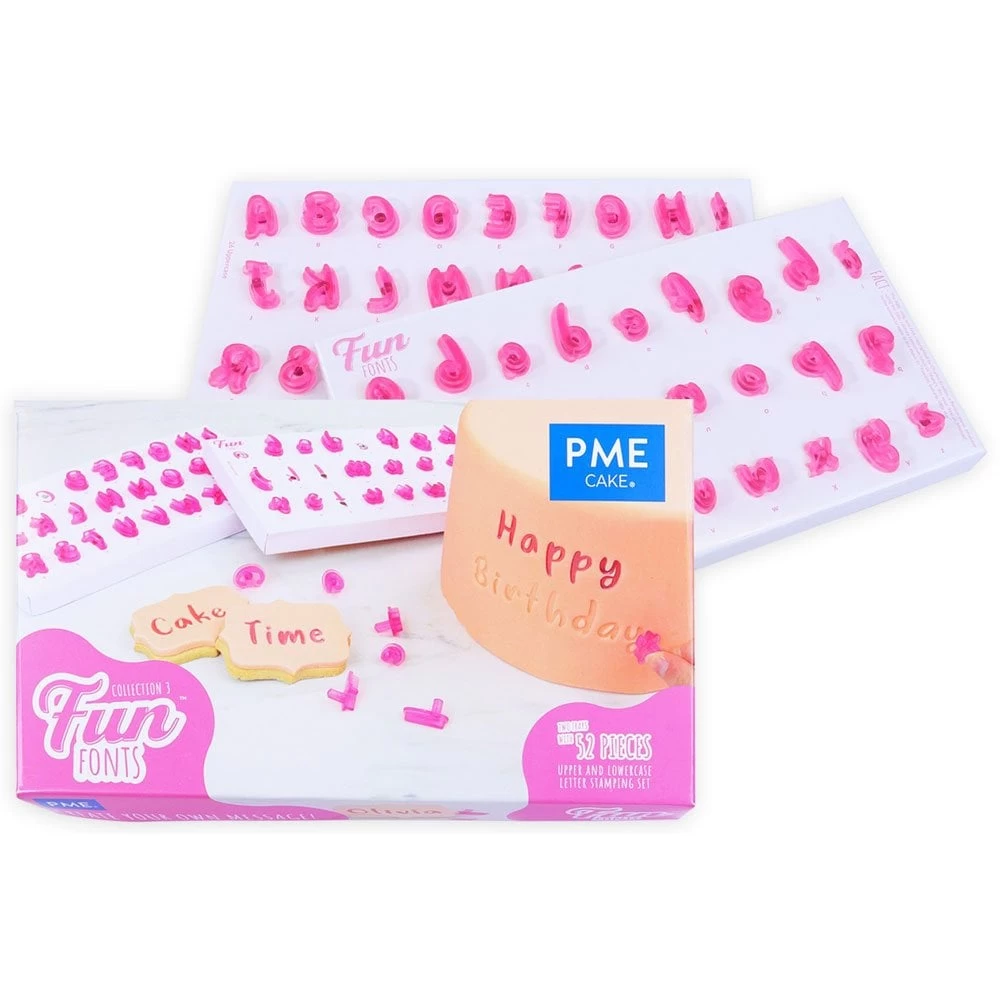 The perfect set of stamps to personalize any edible material including sugarpaste, marzipan and even more. With 26 uppercase letters and 26 lowercase stamps the possibilities are endless. The PME Fun Fonts Letter Stamping Set in the brand new font ‘Collection 3’ is a must have for every cake decorator. Effortlessly create your own message using this stylish and contemporary designed alphabet letter stamping set. Easy to use, this stamping set can be used on rolled fondant (sugar paste), gum paste, modelling chocolate and marzipan.