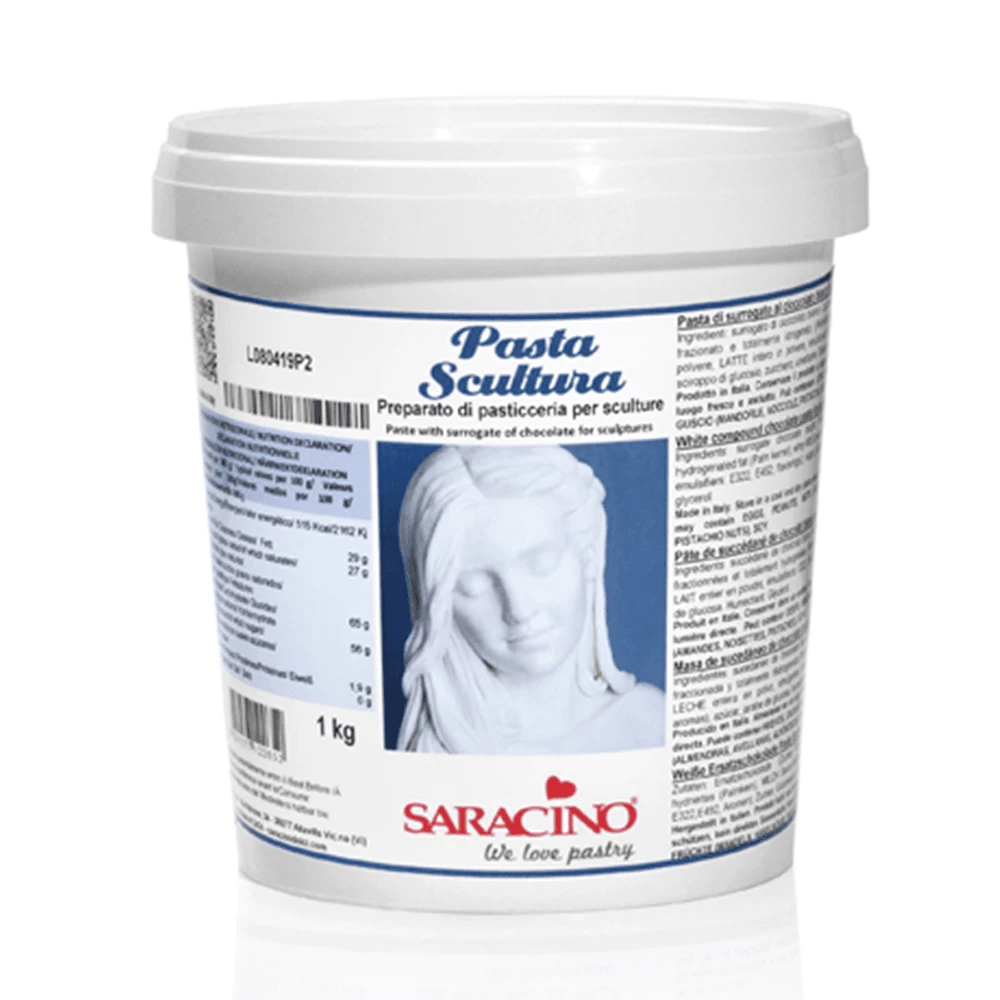 Pasta Scultura is ideal for sculptures like traditional modelling chocolate, but it contains less oils, which makes it possible to colour dust or paint in a short time after completion of the model.