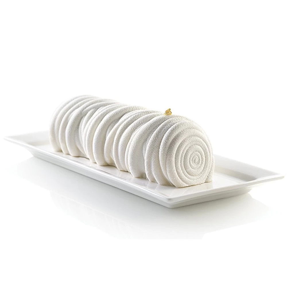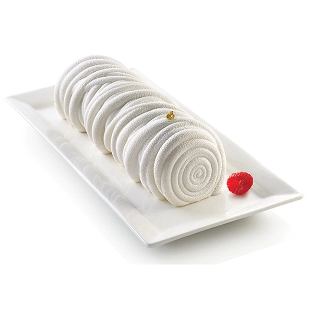 A particular and refined design distinguishes the LANA mould from Silikomart 3Design line. The braided pattern creates a delicate decoration that will make every sweet occasion a special one. The mould is provided with a special internal border which gives a slight round base to your creations. Lana guarantees impeccable results not only as a semifreddo or mousse, but also in the baked version.