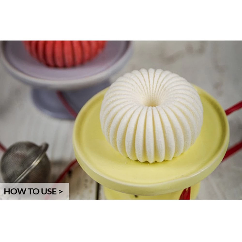 Mini Raggio: An essential shape for a single portion, enhanced by an original touch to bring a fan of new tastes in the kitchen. Thanks to the ray pattern you will obtain a refined and impressive dessert. Each cavity of the mould Mini Raggio, of the line 3Design by Silikomart, is provided with a revolutionary internal border which gives a slightly round base to your creations. Mini Raggio guarantees impeccable results not only as a semifreddo or mousse, but also in the baked version.