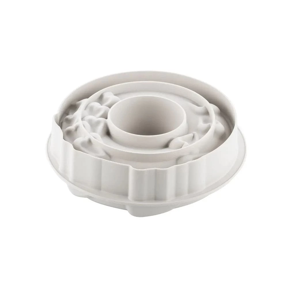 Use Silikomart’s silicone passione cake mould to create the most romantic of bakes. This large silicone mould combines the style of a bundt tin with the shape of a doughnut! Each flexible mould features a repeat heart pattern.