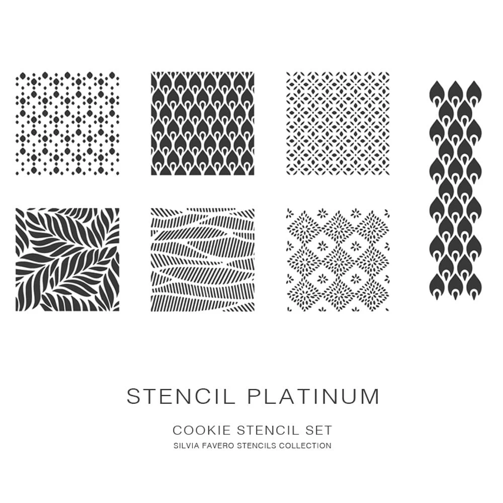 This UNIQUE set of cookie stencils contains 7 different modern designs.