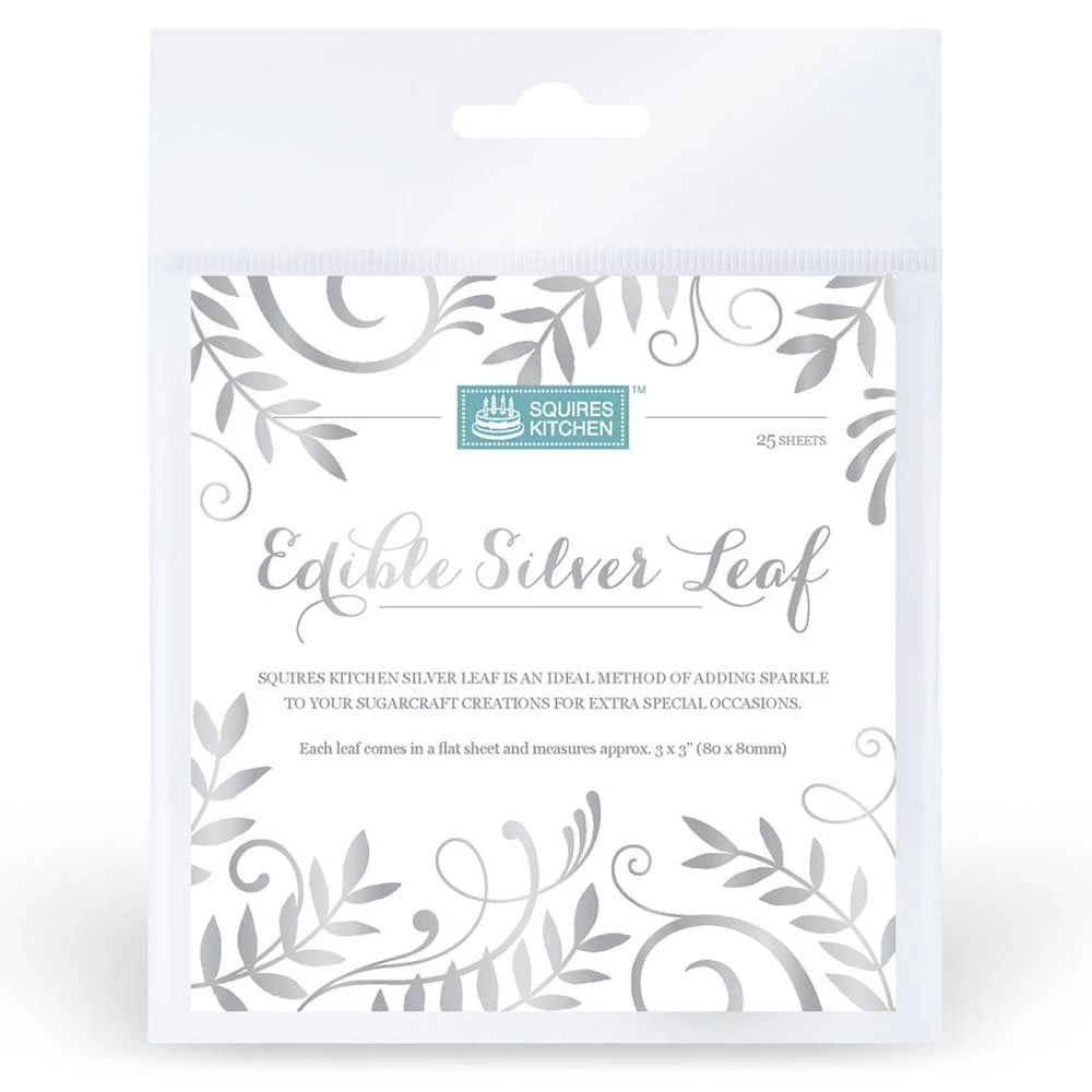 The pure gold leaf is 24ct and completely edible, bringing a decadent touch to your chocolates, desserts, drinks and sugar pieces. Silver leaf is also edible and can be used in the same way, as beautiful surface decoration for chocolates, sugar decorations and more.