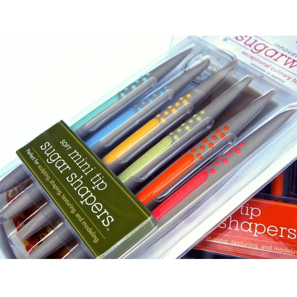 Mini Tip Sugar Shapers™ have smaller heads; best for working on miniature items such as cake toppers, cake pops, decorated cookies, sugar flowers, and other fine detail work.