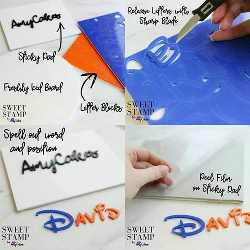 With SWEET STAMP by AmyCakes you can easily emboss your message or name then paint. No more messing around with frustrating and time consuming cutters or struggling to find modern and elegant lettering.