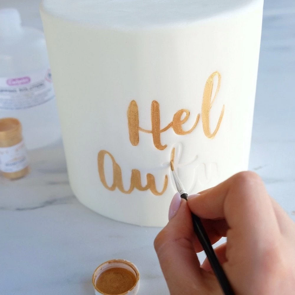 Take your time painting in your letters, it’s one of the more enjoyable tasks in cake decorating.
